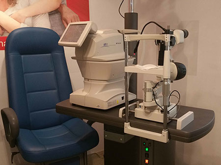 Pentru confortul pacientilor folosim combina oftalmica dotata cu proiector.